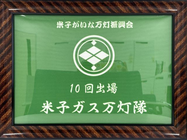 「がいな万灯パレード」出場10回超を記念し、感謝状をいただきました