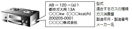 ガス機器には、適合するガスの種類を示したラベルが貼られています。