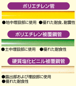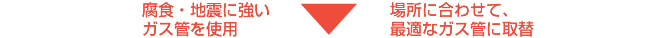 腐食・地震に強いガス管を使用 ↓ 場所に合わせて、最適なガス管に取替
