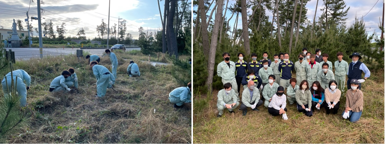 両日とも約1時間、当社の担当区域の草を刈りました。
