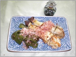 食べやすい大きさに切り、かつお節としょうゆをかけてできあがり!