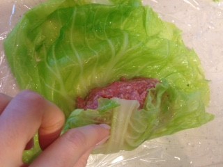 1.キャベツの葉は大きいものを、小さいものは2枚重ねて使う。