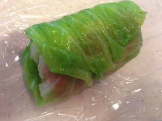 4.茹でたキャベツの芯をそぎとり、3を巻く。