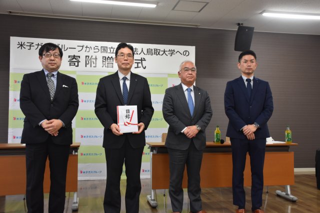 この寄附は、弊社が一昨年90周年を迎えたのを契機に「米子ガスグループ」として取り組み始めたもので、鳥取大学様へ「研究支援金」を贈呈するのは今回で3回目になります。