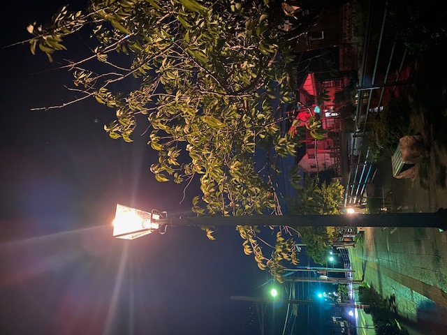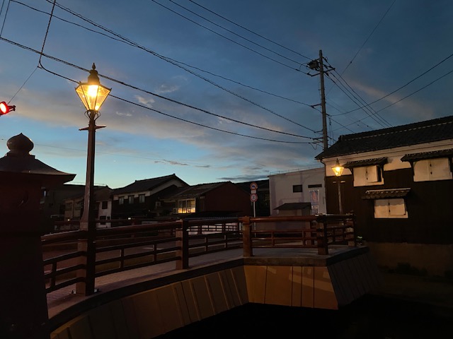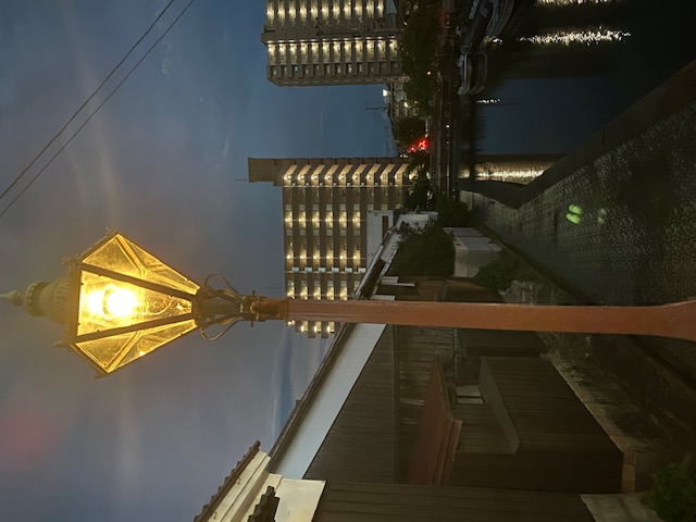 旧加茂川の水面に揺れるガス灯の灯りが美しいスポットです。