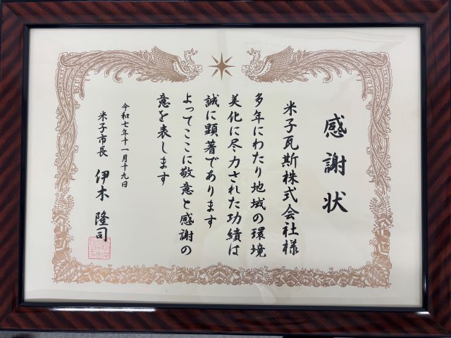 令和7年11月19日に米子市役所で開催された「米子市環境美化活動奨励表彰式」において、弊社は日頃の環境美化活動に対し、感謝状の贈呈を受けました。 「米子市環境美化活動奨励表彰式」は、米子市における環境美化活動の推進を目的とし、地域の環境美化に功労のあった団体又は個人に感謝状を贈呈するものです。 弊社は平成10年より皆生海岸美化清掃および米子水鳥公園清掃ボランティアに参加し、その後も中海アダプトプログラムや白砂青松アダプトプログラム等の清掃活動に継続して取り組んでまいりました。 これらの活動が評価され、今回の表彰につながりました。 今回の表彰を励みに、今後も米子市の環境美化に一層尽力してまいります。 ...
