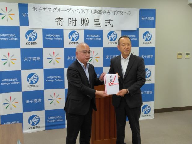 弊社が2020年に創業90周年を迎えたことを機に始まったこの寄附活動は、今回で6回目を迎えました。米子ガスグループは、この米子の地で未来を担う多くの学生を輩出されている米子工業高等専門学校様に対し、継続的な支援を通じて学生の皆さんの学びを応援するとともに、学校との連携強化を図っております。